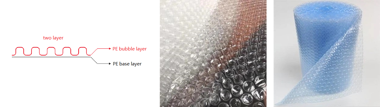 Two-layer air bubble film wrap is widely used as packing material, making bubble bags, swimming pool cover and etc.